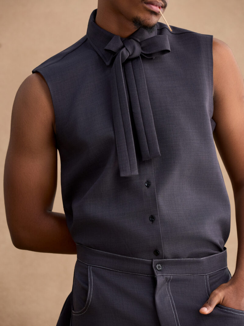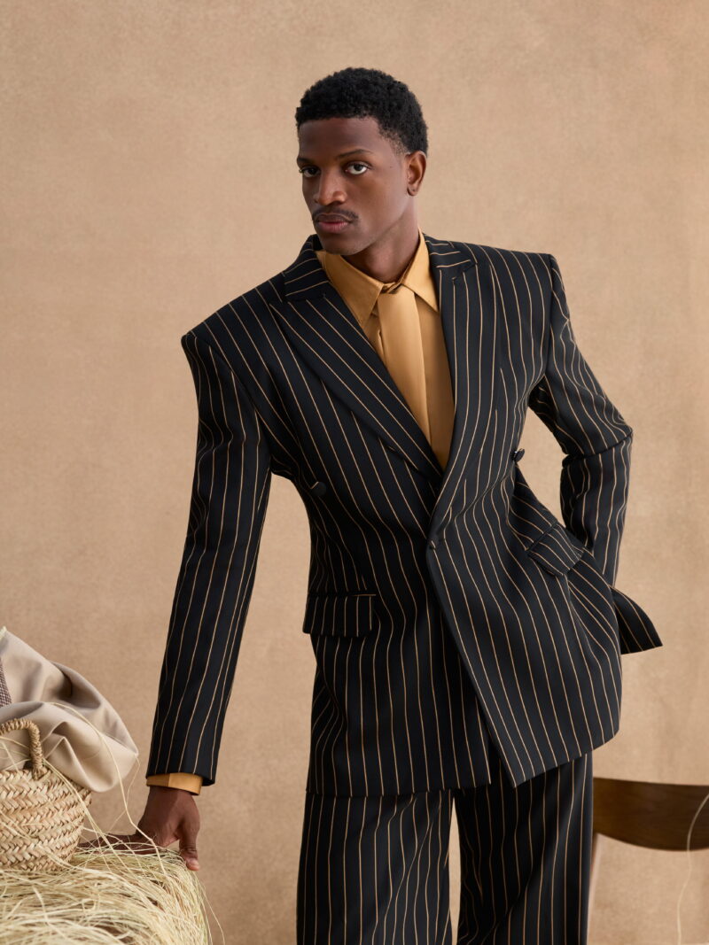 The gray pinstripe power suit